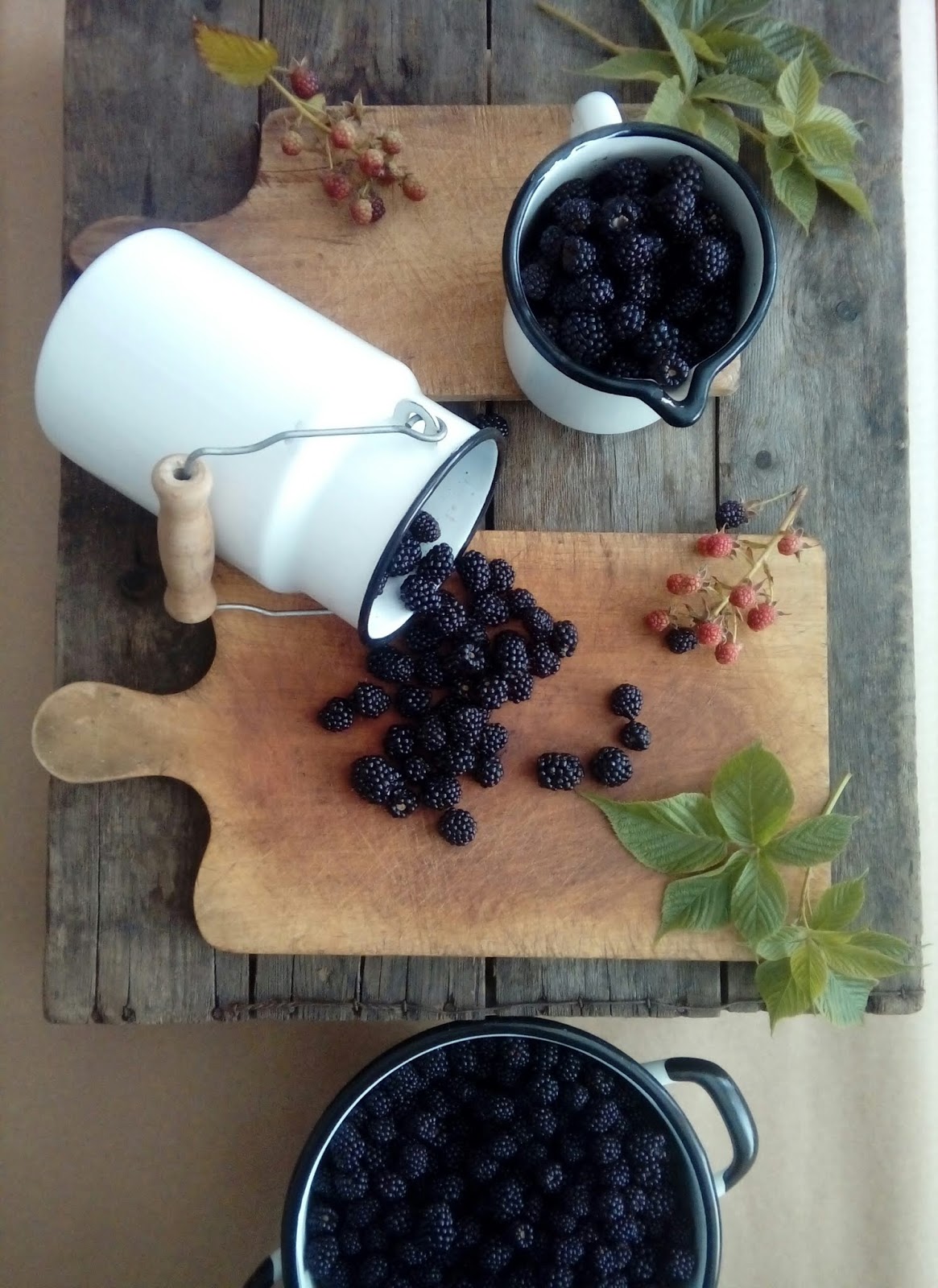 Przerobiłam w tym roku chyba wszystkie z dziko rosnących owoców... dwa rodzaje mirabelek, jeżyny {nieziemsko pachnące}, borówki, maliny, węgierki i jabłka, na początku papierówki a dziś jeszcze szare renety, malinówki, kosztele i kilka innych odmian, których nazw nie znam a mamy ich całe mnóstwo.